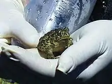 - 1 2 3 Taylor, Sharon K.; Williams, Elizabeth S.; Thorne, E. Tom; Mills, Ken W.; Withers, David I.; Pier, A. C. (1999). "Causes of mortality of the Wyoming toad". Journal of Wildlife Diseases. 35 (1): 49–57. doi:10.7589/0090-3558-35.1.49. PMID 10073345. S2CID 42916999.