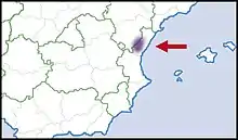This species is endemic to Spain, where it occurs in the nature reserve of the Serra d'Espadà in the Castellón province of the Valencian autonomous community.[1][3][4]
