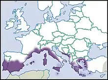 This snail is native to the Mediterranean region of Europe.[1] It has been recorded in the United States in California and Washington as an introduced species.[4]