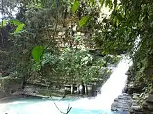 There are a number of caves and caverns in Xilitla, as well as many natural springs. Parakeet Cave, a short walk from the town, is home to a large number of green parrots which leave and re-enter the cave at dawn and dusk every day. The land is largely sedimentary rock with striations visible on cliffs and roads.[6]