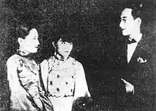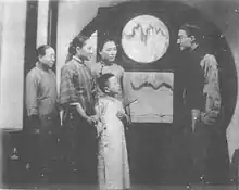 In the 1935 film "Little Friend" (Madame Shen (Xuan Jinglin, second left) introduces her brother-in-law to a bright young boy (Zhang Xiaoqiu) she has brought home as a substitute for her lost son)[2]