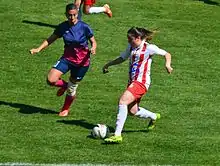 Yaşam Göksu (left) of Konak Belediyespor challenging an attack of Ataşehir Belediyespor in the 2014–15 season.