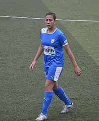 Debuting in the match against FC NSA Sofia on August 8, 2013, she appeared in seven matches of the 2013–14 UEFA Women's Champions League, at which her team advanced to the Round of 16.[5]
