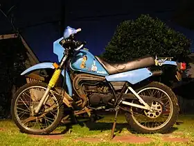 The Yamaha DT50MX is the most common 50 cc (3.1 cu in) motorcycle in the Yamaha DT series. It superseded the DT50M when introduced in June 1981 and can easily be identified by its Mono-Cross(MX) rear suspension with a silver painted square-section rear swinging arm and a more angular tank as opposed to the more rounded one found on the M variant. The 'MX' designation was commonly used on Yamaha motorcycles fitted with the 'Mono-Cross' rear suspension, which was the first to employ a single shock-absorber. It remained in production largely unchanged until 1996, gaining only a CDI ignition system and a change to square bodied direction indicator lights in 1986 with the introduction of the 2FN model (sometimes referred to as the MX-S). The moped is very common in Scandinavia where its leading competitor was the Honda MT50 and can be ridden on a CBT at 16 in the UK.
