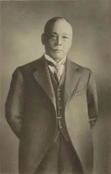After joining Mitsui Bussan, he worked at the Yokohama branch, Shanghai branch, Shanghai Boseki Company, and Osaka branch, rising rapidly through the corporate ranks, becoming Executive Director of Mitsui by 1909.[1] He was forced to resign from Mitsui in 1914, after being implicated in the Siemens Bribery Scandal, a spectacular political scandal involving collusion between several high-ranking members of the Imperial Japanese Navy, Mitsui, and the German industrial conglomerate Siemens AG.