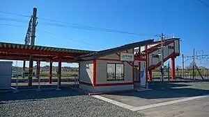 The station building was replaced by a temporary structure in August 2017, with a new building completed in December 2017.[2]