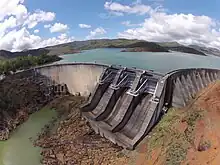 The Yaté Dam is an arch dam on the Yaté River in Yaté commune of New Caledonia, France. The primary purpose of the dam is hydroelectric power generation and it supports a 68 MW power station. Plans for the project began in the early 1950s and the dam was designed by Coyne et Bellier. The owner and operator of the project, New Caledonian Society Energy (ENERCAL), was established on 27 August 1955 to implement the project. Construction began that year and the power station was commissioned in 1958. The dam and entire scheme was inaugurated by Jacques Soustelle, then Minister of State in charge of Overseas Departments, on 21 September 1959. It is the tallest dam and creates the largest reservoir in New Caledonia.[1]