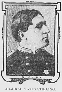 Yates Stirling Jr. (April 30, 1872 – January 27, 1948) was a decorated and controversial rear admiral in the United States Navy whose 44-year career spanned from several years before the Spanish–American War to the mid-1930s. He was awarded the Navy Cross and French Legion of Honor for distinguished service during World War I. The elder son of Rear Admiral Yates Stirling, he was an outspoken advocate of American sea power as a strong deterrent to war and to protect and promote international commerce. During Stirling's naval career and following retirement, he was a frequent lecturer, newspaper columnist and author of numerous books and articles, including his memoirs, Sea Duty: The Memoirs of a Fighting Admiral, published in 1939. Describing himself, Stirling wrote, "All my life I have been called a stormy petrel. I have never hesitated to use the pen to reveal what I considered should be brought to public attention, usually within the Navy, but often to a wider public. I seem to see some benefits that have come through those efforts. I have always believed that a naval man is disloyal to his country if he does not reveal acts that are doing harm to his service and show, if he can, how to remedy the fault. An efficient Navy cannot be run with 'yes men' only."[1]