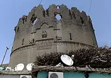 Yedi Kardeş / Heft Birayan Tower (Yedi Kardeş Burcu / Birca Heft Birayan, "Tower of the Seven Brothers") is a cut basalt tower in Diyarbakir. It was built in 1208 in honor of the leader of the Artukid Turkish dynasty, Melik Salih Mahmut, and designed by the architect Yahya Ibrahim Sufi.[1] It is adorned with the Artukid symbols, Koranic inscriptions and nature reliefs.[2]