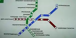 The construction of the Bazhovskaya station which should be between the "Geologicheskaya" and "Chkalovskaya" has been postponed indefinitely.