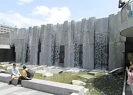 In 1999 the Yerba Buena Gardens received the Gold Medal of the biannual Rudy Bruner Award for Urban Excellence.[6] In praising the design of the work, the jury noted the process that led to the creation of the gardens, as well as its inclusiveness in terms of the population it serves and its neighborhood: "The mixed-use development enables cultural, social justice, and economic development agendas to coexist within a network of collaborative management practices."[7] Furthermore, the jury "applauded the evolution of the project's development process to an inclusive model involving multiple constituencies." However, in his history of the development of San Francisco from the 1950s to the 1990s Chester Hartman recounts that the entire Yerba Buena project was long drawn out over 3 decades, born of a local struggle that included evictions and harassment of the previous tenants in the area, most of them old and poor, but who had joined to fight for their rights. Even during the final design stages there were struggles regarding the building program. After John Elberling, of the Tenants and Owners Development Corporation (TODCO) protested the removal of a bowling alley from the plans, the San Francisco Development Agency (SFRA) backed down and the bowling alley was re-included and eventually built.[7]