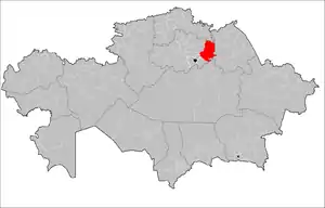Yereymentau District[3] (Kazakh: Ерейментау ауданы) is a district of Akmola Region in northern Kazakhstan. The administrative center of the district is the town of Yereymentau.[4] Population: 32,236 (2009 Census results);[5] 42,246 (1999 Census results).[5]