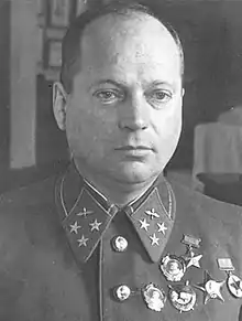 Yevgeny Savvich Ptukhin (Russian: Евгений Саввич Птухин; 3 March 1902 23 February 1942) was a Soviet Air Force officer who held a variety of commands during the Russian Civil War, the Spanish Civil War, and the Winter War before his downfall shortly after the German invasion of the Soviet Union. Arrested along with many other veterans of the Spanish Civil War on fabricated charges of being in an anti-Soviet conspiracy, he was eventually declared guilty of treason and shot without trial on orders of Lavrenty Beria in February 1942. He was posthumously rehabilitated in 1954.