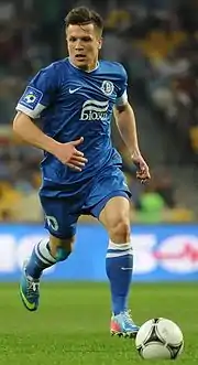 Yevhen Olehovych Konoplyanka (Ukrainian: Євген Олегович Коноплянка; born 29 September 1989) is a Ukrainian professional footballer who plays as a winger for the Ukraine national team.