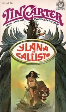 Ylana of Callisto is a science fantasy novel by American writer Lin Carter, the seventh in his Callisto series. It was first published in paperback by Dell Books in October 1977.[1] Its working title was evidently Jungle Maid of Callisto, as announced in Locus #198, January 30, 1977;[1] the title used appears to be a nod to that of Edgar Rice Burroughs's Llana of Gathol, a book in the Barsoom series that inspired Carter's Callisto books. The character of Ylana, however, was established in Mind Wizards of Callisto, an earlier volume in the series. The novel includes an appendix ("The Men of Thanator") collating background information from this and previous volumes.