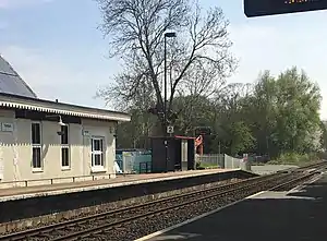 The station is unstaffed and has no ticket provision (so these must be bought on the train or in advance); the old buildings still stand but are now privately owned. There are shelters on both sides and train running information is provided via CIS displays, a customer help point on platform 1, a payphone on platform 2 and timetable poster boards. Step-free access is available only on the southbound platform.[1]