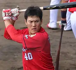 Yoshitaka Isomura (磯村 嘉孝, Isomura Yoshitaka, born November 1, 1992 in Toyota, Aichi, Japan) is a professional Japanese baseball player. He plays catcher for the Hiroshima Toyo Carp.[1][2]
