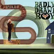 "You Were Right" is the first single released from English singer-songwriter Badly Drawn Boy's second studio album, Have You Fed the Fish? He recorded the song and album following his work on the soundtrack to the 2002 romantic comedy-drama film About a Boy.[1] The song, written through the process of arranging random words into fluent verses, contains references to several musicians, including Madonna, Frank Sinatra, Jeff Buckley, Kurt Cobain, and John Lennon, as well as Elizabeth II.