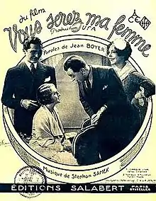 You Will Be My Wife (French: Vous serez ma femme) is a 1932 German comedy film directed by Carl Boese, Serge de Poligny and Heinz Hille and starring Alice Field, Roger Tréville and Lucien Baroux.[1] It is the French-language version of UFA's The Cheeky Devil.