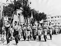 The Wafd Party, the mainstream liberal party, viewed Young Egypt with suspicion, believing it to be controlled opposition sponsered by the king. After the Wafd's victory in the 1936 elections, the Wafdist leader Mostafa el-Nahas accused Young Egypt with collaborating with a foreign power, implying Italy.[41] This incited a series of street battles between the Green Shirts and the Blue Shirts - the Wafdist youth branch.[42] Frequent clashes took place between the Green Shirts of Young Egypt and the Blue Shirts of the Wafd, culminating in the unsuccessful attempt on the life of el-Nahas by a member of Young Egypt in November 28th, 1937.[43][44] While there are similarities between the Green Shirts and the fascist paramilitaries of the Italian Black Shirts and Nazi Brown Shirts, a key distinction is that Young Egypt's fighters were college students fighting with clubs and bricks - not demobilized, brutally experienced and disillusioned World War One veterans.[45][46] These "shirt" organizations would participate in marches and street brawls. After numerous incidents of violence between militant students, paramilitary organizations were banned on March 1938.[47]