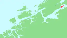 Ytterøya is an island in the Trondheimsfjord in the municipality of Levanger in Trøndelag county, Norway. The 15-kilometre (9.3 mi) long island has an area of 27.8 square kilometres (10.7 sq mi) has about 600 residents (as of 2018).[1] The highest point is the 210-metre (690 ft) tall Sanstadkammen. The island has good agricultural land and has settlements across the whole island. The Levanger–Hokstad Ferry connects the village of Hokstad on the island to the town of Levanger on the mainland. Ytterøy Church is located on the island.[2]