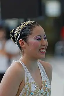 At the 2016 Summer Olympics, she won two bronze medals, one in the duet event with Risako Mitsui, and one in the team event.[4]