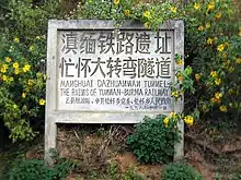 One such sign can be glimpsed opposite the ferry to Baodian, slightly south of Manwan in the far north-eastern section of Lincang prefecture. The sign records a tunnel from the construction, but the entry has long been covered over and there is no visual hint to the line's presence whatsoever.
