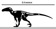Yurgovuchia is known only from a single individual represented by an associated partial postcranial skeleton. The holotype and the only known specimen, UMNH VP 20211, includes cervical, dorsal, and caudal vertebrae as well as the proximal end of a left pubis. The preserved vertebrae are fused, indicating that the specimen was an adult at the time of death and not a juvenile specimen of Utahraptor. Instead of this, it represents a smaller and different species of dromaeosaurid, with an estimed size of 2.5 m (8.2 ft).[1]