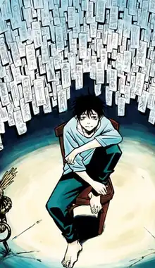 Yuta then reunites with Maki and other sorcerers to help Gojo and promises to kill Yuji if he can no longer control the vengeful spirit.[47] The group joins forces to defeat Kenjaku who aims to curse Japanese civilians through his Culling Game terrorist attack.[48] He enters the Sandai colony of the Culling Games in order to protect the civilians from sorcerers and gain information on Kenjaku. He successfully defeats multiple very powerful, reincarnated sorcerers, such as Ishigoori and Uro. When Gojo is freed, Yuta and his allies are forced to see their mentor fight the free Ryomen Sukuna and prepare for the worst depending on the result. After Gojo's death at the hands of Sukuna, Yuta is seen planning with Angel, Mei Mei, Kusakabe and Hakari on who to send after Kenjaku during which they decide to send Takaba. Yuta is later shown after Takaba's battle with Kenjaku slicing off Kenjaku's head.