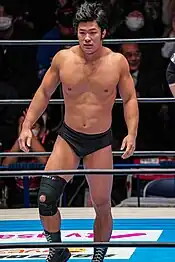In April 2017, after graduating from Fukuoka University, Uemura was signed to New Japan Pro-Wrestling under New Japan's "young lion" system.[1] A year later, in April 2018, Uemura as well as fellow young lion, Yota Tsuji, made their pro-wrestling debuts at Lion's Gate Project 11 where Uemura was defeated by Ren Narita.[3][4][5] On day one of Road to Wrestling Dontaku 2018, Uemura was defeated by Tetsuhiro Yagi.[6][7] On day six, he was defeated by Tomoyuki Oka.[8] On day eight, Uemura was defeated by Rocky Romero.[9] On day 14, Uemura and Yuji Nagata were defeated by Oka and Shota Umino.[10] On night two of Wrestling Dontaku 2018, Uemura teamed with Narita and Umino to be defeated by the team of veterans, Tiger Mask, Jushin Thunder Liger and Ryusuke Taguchi.[11][12] At New Japan Road 2018, Uemura and Yota Tsuji wrestled to a time-limit draw.[13] At Lion's Gate Project 12, Uemura and Tsuji once again wrestled to a time-limit draw.[14] On day 6 of Best of the Super Juniors XXV, Uemura, Tsuji and Flip Gordon were defeated by Umino, Tiger Mask and Oka.[15] On day 11, Uemura and Dragon Lee were defeated by Umino and Kushida.[16] On day 12, Uemura, ACH and Tsuji were defeated by Umino, Oka and Tiger Mask.[17] Throughout Kizuna Road 2018, Tsuji and Uemura wrestled to time-limit draws.[18][19][20][21][22][23] On September 8, Uemura teamed with Shota defeat Tsuji and Ren Narita to win his first match. In October 2019, Uemura teamed with Tiger Mask as part of the Super Junior Tag Tournament where they came in last place with zero points.[24] Uemura competed in the 2020 New Japan Cup for the first time being eliminated by Yoshinobu Kanemaru in the first round.[1][25] In November 2020, he entered the Best of the Super Juniors tournament. He finished the tournament with 0 wins and 9 losses, failing to advance to the finals.