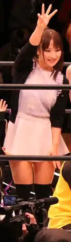 On September 7, 2010, Aikawa, then known primarily as a gravure idol, announced that she was transitioning to professional wrestling, having begun training the previous May under retired professional wrestler, mixed martial artist and model Fuka Kakimoto.[3] Aikawa, with a background in classical ballet and taekwondo, had first become interested in professional wrestling, after seeing All Japan Pro Wrestling's 2008 Champion Carnival tournament.[3] On September 7, Aikawa appeared at the first press conference for Fuka's and Rossy Ogawa's new World Wonder Ring Stardom promotion, officially being announced as part of its roster. During the press conference, veteran wrestler Nanae Takahashi accepted Aikawa's request to become her opponent for her upcoming debut.[20] After six months of training under Fuka and Nosawa Rongai,[18] Aikawa made her much anticipated professional wrestling debut on October 31, 2010, in the main event of her self-produced Yuzupon Matsuri show, facing Nanae Takahashi.[2][21] After a fourteen-minute beatdown, Takahashi pinned Aikawa for the win and afterwards declared that since her opponent, now with her left eye swollen shut and with a severely bruised face and chest, had withstood the punishment, she had "paid her dues" and was ready to become a true professional wrestler.[5][22] On January 23, 2011, Aikawa made her debut for Stardom at the promotion's first event, being pinned by Takahashi in a tag team match, where she and Natsuki☆Taiyo faced Takahashi and Iris.[23][24] The second Yuzupon Matsuri event took place on February 6 and saw Aikawa defeat veteran Yumiko Hotta in the main event for the first win in her career.[25] Six days later, Aikawa took her first win in Stardom, defeating Eri Susa.[23] On April 24, Aikawa made her debut as the masked character Yuzupon Mask, a female version of Tiger Mask, wrestling nine-year-old Haruka to a three-minute time limit draw.[26] On May 15, Aikawa wrestled Ayumi Kurihara to a twenty-minute time limit draw in the main event of the third Yuzupon Matsuri.[27][28] On June 12, Aikawa formed the tag team BY Hou ("BY Cannon", a name inspired by Antonio Inoki's and Giant Baba's old BI Hou tag team)[29] with Yoko Bito, with the two defeating Mayu Iwatani and Nanae Takahashi in their first match together.[26] On June 26, Aikawa and Bito defeated Kawasaki Katsushika Saikyou Densetsu (Natsuki☆Taiyo and Yoshiko, shortened to Kawakatsu) to earn the title of Stardom's top tag team.[26] On July 24, Aikawa defeated Yoshiko in a decision match to become the inaugural Wonder of Stardom Champion.[26][30] Later that same day, Aikawa made an appearance for DDT Pro-Wrestling as a member of the TKG48 stable, wrestling in a fifteen-person Ironman Heavymetalweight Championship battle royal, from which she was eliminated by Emi Sakura.[31]