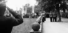 In 1919, it was decided that the eastern part of the Flatow district would be ceded to Poland and the western part of the district, including the town of Flatow would remain in Germany. This caused huge protests from the large Polish minority of the town (approx. 12%) and the surrounding rural lands. From 1922 until 1938, Flatow was part of the newly formed Province of Grenzmark Posen-West Prussia inside Germany. When this province was dissolved on 1 October 1938, Flatow was integrated into the Province of Pomerania. Despite this, the town became the seat of local branches of the Union of Poles in Germany and the Polish-Catholic School Society.[2] Local Poles managed to establish a Polish school, preschool,[2] library[3] and the Sparta Złotów football club (multi-section club after the war). Polish press was still issued in the town.[2] The Polish school was devastated by the Germans in the 1930s,[4] and the local synagogue was destroyed during the Kristallnacht in 1938. In 1939, shortly before the invasion of Poland, local Polish activists and teachers were arrested and later imprisoned in Nazi concentration camps.[5] During World War II, the Polish resistance conducted espionage of German activity in the town.[6] In the last months of the war, the town was captured by Polish troops in the Battle of Złotów on 31 January 1945 and was finally reintegrated with Poland.[2]