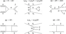 ZZ dibosons are rare pairs of Z bosons. They were first observed by the experiments at the Large Electron–Positron Collider (ALEPH, DELPHI, L3 and OPAL). The first observation in a hadron collider was made by the scientists of DØ collaboration at Fermilab.