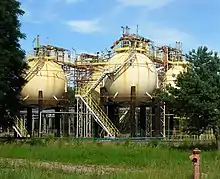 Subsequent to these reorganisations, new production lines were launched in Bydgoszcz, manufacturing, among others, aniline, nitrobenzene, toluidine, hydrazine, colorants, polyvinite or phenol.[6] Local brine from mines in Inowrocław was used for production.[17] In 1967, Zachem had been employing more than 5,000 people and its annual output amounted PLN 1.7 billion.[18]