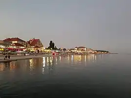 Although the village has its origins in the late 19th century, when Baron von Falz-Fein helped create a settlement there, it was formally founded in 1922 when it was given its name.[3][9] According to official sources, in the early 1920s peasants from the city of Hladkivka, then known as Kelehei (Ukrainian: Келегеї), settled Zaliznyi Port and engaged in agricultural work, whose products were exported using ships loaded on the Black Sea coast.[10] By the 1940s, there was still only one street in the village, running across the seashore.[7] Following the Annexation of Crimea by the Russian Federation, Zaliznyi Port developed as a popular tourist attraction for Ukrainians, due to bans on travel to the occupied Crimean peninsula.[11]