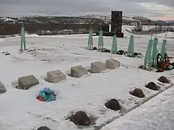 From 1941 to 1944, the Litsa River formed the Arctic frontline between German and Finnish troops west of the river – trying to capture Murmansk – and Soviet troops on the east, defending the city. This frontier was of vital importance for both sides, as Murmansk was the only Soviet harbour left in Europe and the northern route to Murmansk and Arkhangelsk supplied the Soviet Union with approximately 25% of all lend-lease aid.[2] During the stalemate that lasted four years, thousands perished in the tundras on both sides of the river. At the time the Litsa valley was called Death Valley (Долина смерти, Dolina smerti) by the Soviets; though later the expression Valley of Honor (Долина славы, Dolina slavy) became fashionable. The defense of Murmansk succeeded; the Germans never reached the city and the supply lines were not seriously interrupted, although the Germans bombed Murmansk to rubble from occupied Norway. See also: Operation Silver Fox and Operation Platinum Fox. The remains of the WW II fighting (trenches, pillboxes, defense pits etc.) can be visited with some specialised travel agencies.[3][4]
