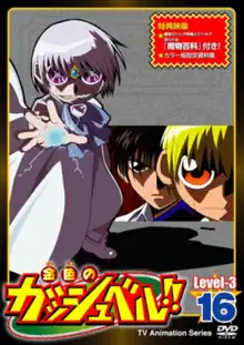 The third and final season, titled level 3,[1] of the Zatch Bell! anime series was directed by Tetsuji Nakamura and Yukio Kaizawa and produced by Toei Animation. Based on the manga series by Makoto Raiku, the season follows the Mamodo Zatch Bell, along with his human partner Kiyo Takamine, on his continuing quest to become king of the Mamodo world, but they both must also contend with an existential threat presented by the Mamodo Rioh. The third season of the TV series, known formally as Konjiki no Gash Bell!! (金色のガッシュベル!!, lit. "Golden Gash Bell!!"), aired in Japan from April 3, 2005, to March 26, 2006, on Fuji TV.[2][3] The season adapts volumes 18 through 22 of the manga,[lower-alpha 1] before assuming an original plotline roughly parallel to volumes 23 through 29.