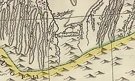 Kisty-Ingoschofski (Ingush) on Jacob von Staehlin's map in 1771, over a decade prior to the establishment of the fortress Vladikavkaz on the right bank of the Terek river.