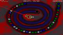 Zaz (a backronym for "Zaz ain't Z***") is a free software (GPLv3[3]) puzzle video game which is similar to Zuma.