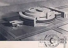 After fleeing Yugoslavia, Strižić joined the faculty of the University of Melbourne (1956–1961),[21][15] writing a thesis,[22] collaborating on many publications, and returned to designing. His project for the Australian House of Representatives (1956–1962) was awarded the first prize in a major competition. In the late 1950s, Strizic taught at Massachusetts Institute of Technology (MIT) in the United States, and later collaborated with the International Academy of Architecture and Town Planning at the UN. He was invited to Braunschweig in the 1960s to establish a third design department at the university of the time and from 1962 on, he lectured at the High Technical School in Braunschweig.[23] There, Strižić became interested in the current topic of airport architecture and planning, which he followed with some notable studies.[24][25] In 1968, Strižić's book "Wohnbauten", the third sequel to previous books on architectural design, was published.