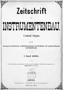 The Zeitschrift für Instrumentenbau ("ZfI") (Journal for the Construction of Musical Instruments) was a German-language journal dealing in large part with the manufacture of musical instruments. It was published in Leipzig from 1880 through 1943 and serves as a chronicler of the musical world and as an intelligent reporter on some of the more technical aspects of instrument development.