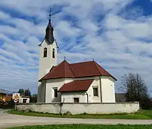 The church in Zgornja Zadobrova is dedicated to Saint Thomas (Slovene: sveti Tomaž).[1][2][7] It was mentioned in written sources in 1520 and was originally wooden. It burned and was replaced by the current built church in 1529, consecrated by Bishop Thomas Chrön in 1603.[8]