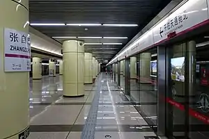 Zhangzizhong Lu Station[1] (simplified Chinese: 张自忠路站; traditional Chinese: 張自忠路站; pinyin: Zhāngzìzhōnglù Zhàn) is a station on Line 5 of the Beijing Subway. Zhangzizhonglu, literally meaning Zhang Zizhong Road, is named after general Zhang Zizhong, who died in the Second Sino-Japanese War. It will become a transfer station for Line 3 in the future.[2]