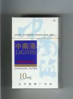 Zhongnanhai (Chinese: 中南海; pinyin: Zhōngnánhǎi) is a Chinese brand of cigarettes, currently owned and manufactured by the Beijing Tobacco Corporation.[4] The name Zhongnanhai is also that of a central government complex in Beijing.