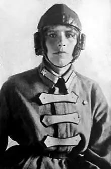 Zinaida Petrovna Kokorina (Russian: Зинаида Петровна Кокорина; born 1898 1980)[1] was a Russian schoolteacher and aviator. In 1925, she became the world's first female military pilot[2] when she graduated from the Military Aviation School in Yegoryevsk near Moscow. Although she wanted to become a fighter pilot, given her excellent examination results, she was encouraged stay on at the school as an instructor, training some of Russia's most successful female World War II pilots, including Nina Raspopova. She later spent 30 years as headmistress of a village school at Cholpon-Ata in Kyrgyzstan. On her retirement, she returned to Moscow.[3][4]