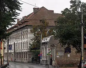Founded as a girls' school in 1921, it initially had three grades, but expanded to eight grades from the 1924-1925 year.[1] The school building dates to 1925-1928, and is classified as a historic monument by Romania's Ministry of Culture and Religious Affairs.[2] Inaugurated in time for the 1928-1929 school year, it was financed by a donation from Mihail and Sevastița Vasilescu, and the school was named in their honor at that point. In 1971, on the occasion of the semicentennial, it was named after the 19th-century patriot Zinca Golescu. In 2001, it was granted the title of national college.[1]