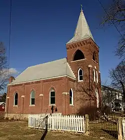Zion Lutheran Church is a historic Lutheran church located near Jefferson City, Cole County, Missouri. It was built in 1906, and is a one-story Gothic Revival building constructed of brick with a limestone foundation. It features a three-story front tower with a spire and a polygonal apse in the rear.[2]: 5