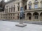 Znovuzrození (English: Rebirth) is a 1983 bronze sculpture by Josef Malejovský (1914-2003).[1][2] It is installed outside the National Theatre in Prague, Czech Republic, on a piazzetta which was named "Náměstí Václava Havla" in 2016 to honor the first Czech president. The statue is a popular subject to artistic interventions - it has been wrapped in bubblegum-like cover, dressed in Carmen costume or into a lookalike of the famous Woman In Gold painting by Gustav Klimt.[3]