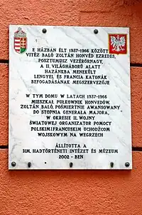 A memorial tablet to Zoltan Baló, erected on his house in Budapest