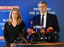 Čaputová and Robert Mistrík, initially a front-runner who withdrew from the race and endorsed her.